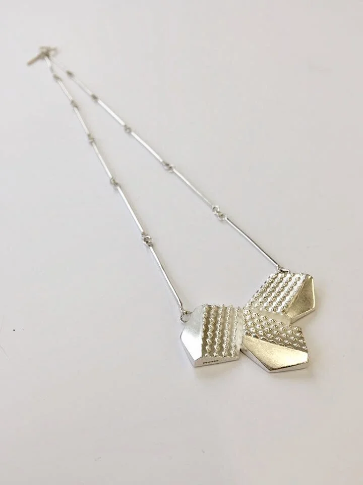 My current jewellery has been hand engraved with geometric patterns that catch the light and sparkle as you wear them. Hand engraving is a heritage craft which involves removing pieces of metal to leave a bright cut line. I was taught to engrave by master silversmith and engraver Malcolm Appleby.