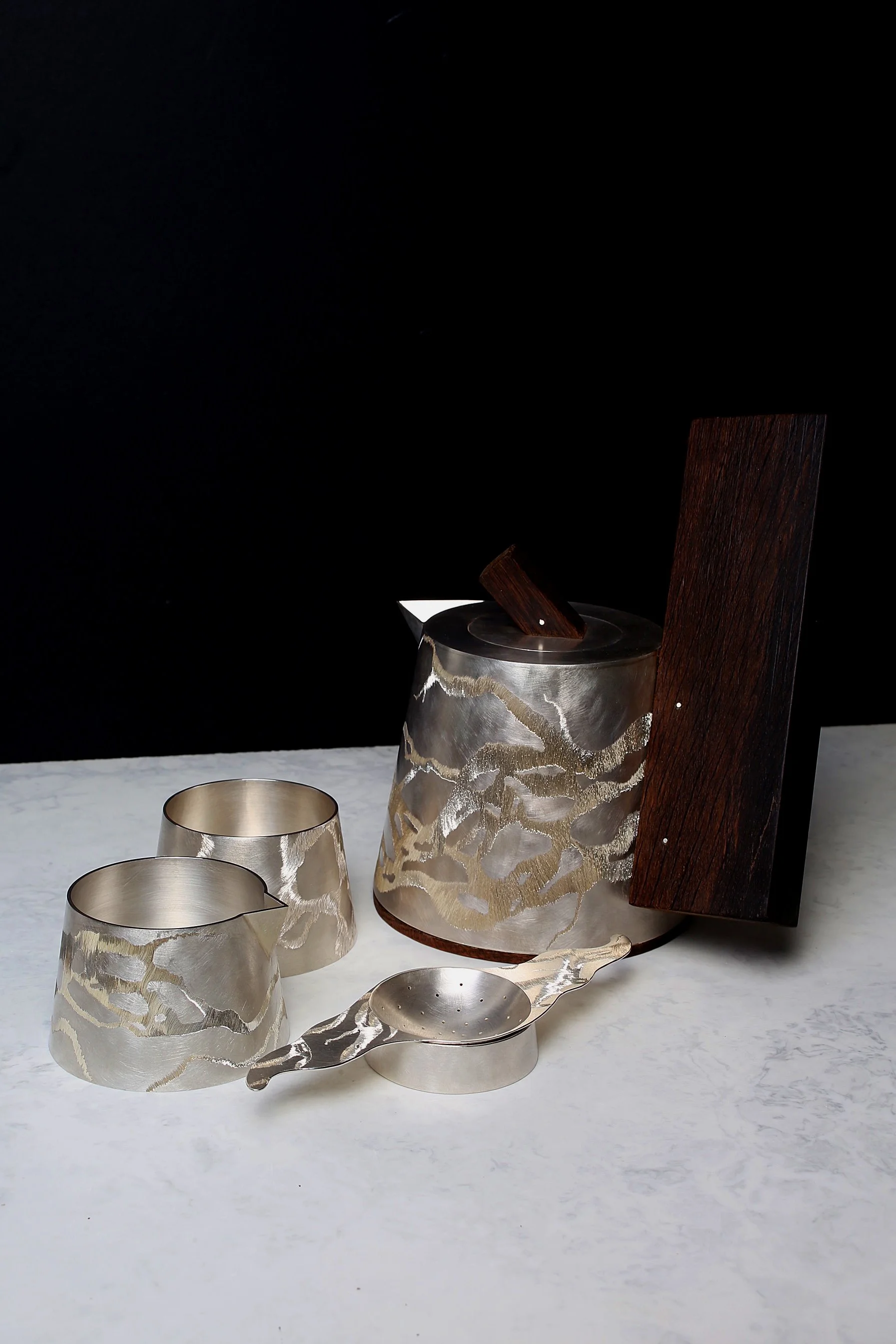 Glacial Flow Tea set - made from 100% recycled silver and Scottish bog oak 2022